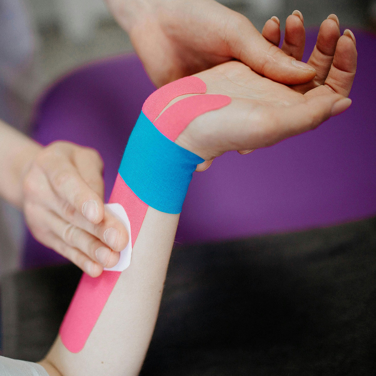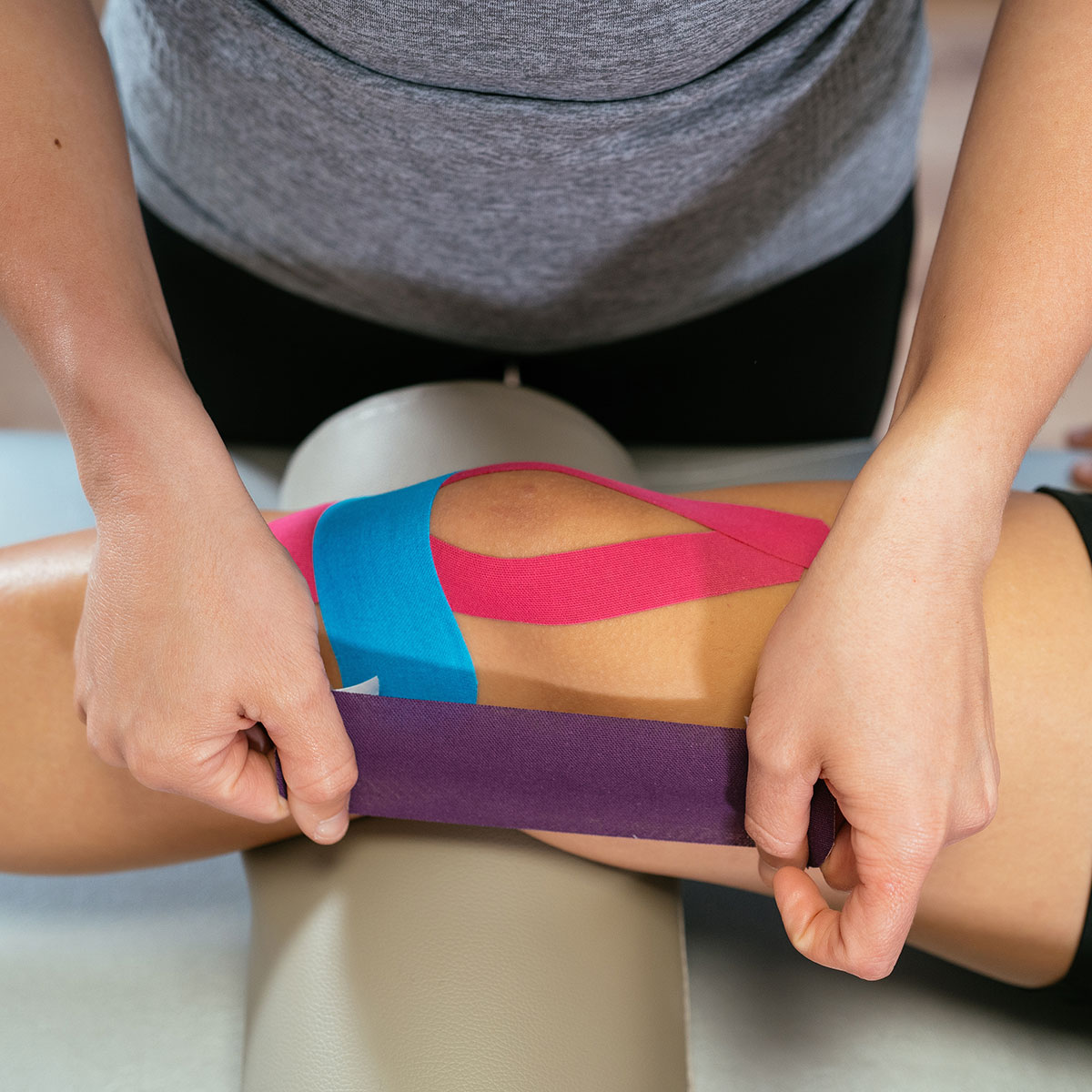 Kinesio Taping is a therapeutic taping method that relieves pain and promotes lymphatic drainage by gently lifting the skin at a microscopic level.
